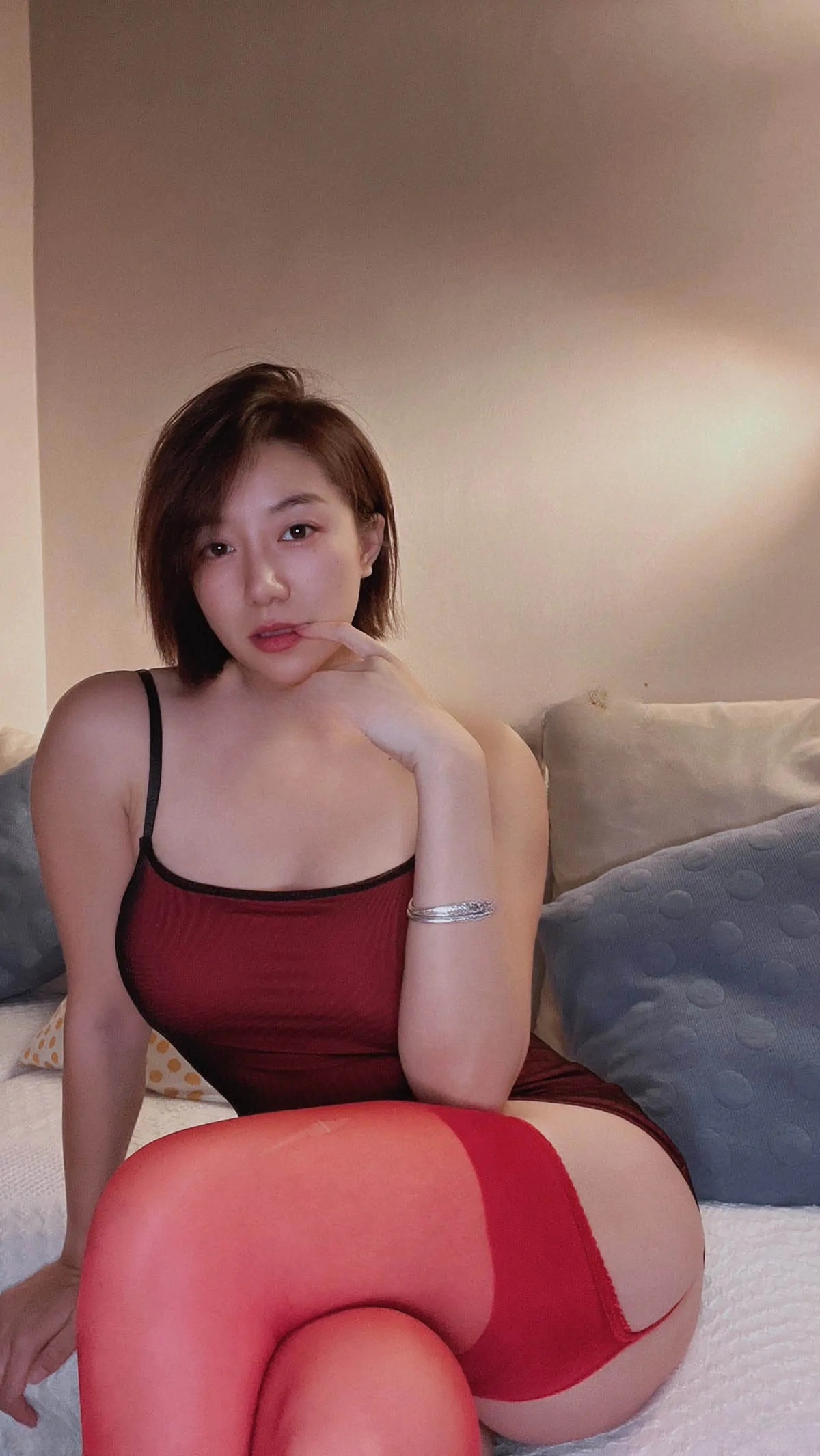 要说杀伤力最强的还是那套透明吊带!水光质感的面料贴着肌肤,灯光下腰窝的阴影都清晰可见~「做你的心头肉」系列更是把纯欲风玩到极致,软糯毛衣滑落肩头的瞬间,我手机屏幕都要被戳碎啦!🍑 每张图都像在耳边呵着气问「喜不喜欢」呢~